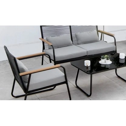Das Gestell der Acamp Paxos Lounge ist aus Stahlrohr pulverbeschichtet ud bietet einen optimalen Rostschutz durch wetterfestes elektrolytisches Beschichtungsverfahren. Die Armlehnen bestehen aus Polywood, Sitz- und Rückenfläche sind mit rundem FlexMesh-Polyrattan umwickelt. Die Sitz- und Rückenkissen aus hochwertigem Polyester mit Schaum-/Vliesfüllung sind mit Reißverschluss und somit leicht zu reinigen. Die Lounge bietet einen sehr guten Sitzkomfort und die Tischplatte besteht aus schwarzem Sicherheitsglas.