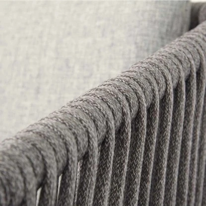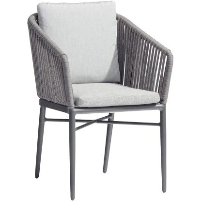Der Sessel besticht durch einen einzigartigen, hochwertigen Material-Mix und erstrahlt dabei in einer zeitlosen Eleganz. Das leichte und dennoch robuste Aluminium-Gestell ist Anthrazit pulverbeschichtet. Sie nehmen auf einem ca. 6 cm dickem Sitzkissen in der Farbe Dunkelgrau meliert bequem Platz, ein zweiten Kissen polstert Ihre Rückenfläche. Keine Angst vor dem Ketchup -Malheur: Die Kissenhüllen sind mittels Reißverschlusses abziehbar und pflegeleicht in der Waschmaschine bei max. 30 °C zu reinigen. Die elegant geschwungene Arm-/Rückenlehne ist mit flachen Polyesterschnüren in der Farbe Anthrazit meliert umwickelt und bietet daher einen traumhaften Sitzkomfort. Die gedeckten Farben in Kombination mit dem sehr hochwertigen Material-Mix ermöglichen den uneingeschränkten Einsatz im Objekt-Bereich. Der Stapelsessel Manhattan ist leicht zu transportieren und zu platzsparend stabelbar. Die bodenschonenden Fußgleiter sind nach Jahren des Gebrauchs leicht zu wechseln und als Ersatz jederzeit erhältlich. Dieser Sessel ist nicht nur atemberaubend schön, sondern ein robuster und langlebiger Begleiter auf jeder Terrasse, auf dem Balkon oder im Garten. Der Sessel misst ca. (HxBxT) 81 cm x 61 cm x 61 cm und hat ein Gewicht von ca. 4 kg.