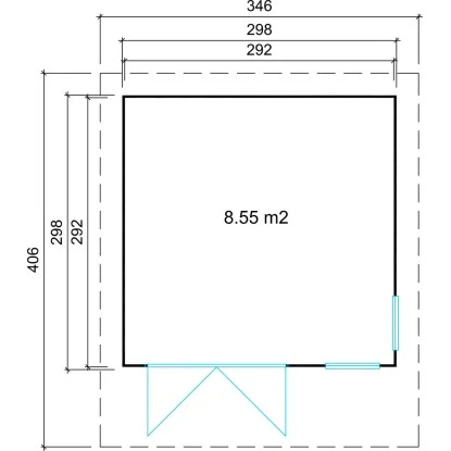 – Außenmaß mit Dachüberstand: ca. 428 x 428 cm