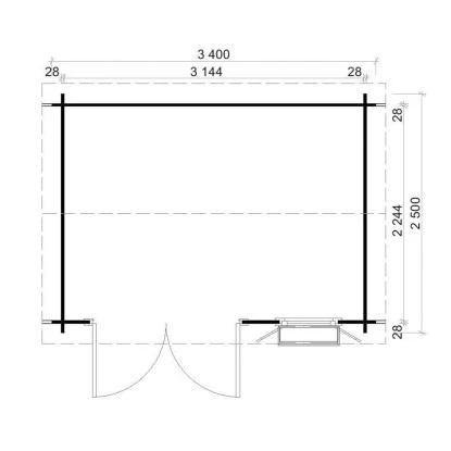 Die Seitenwandhöhe beträgt etwa 204 cm, während die Gesamthöhe des Gartenhauses ca. 234 cm beträgt. Das Haus verfügt über eine Leimholz-Doppeltür mit den Maßen ca. 160 cm x 188 cm und ein Einzelfenster mit den Maßen ca. 61 cm x 91 cm. Die Wandstärke beträgt 28 mm. Bitte beachten Sie, dass der Türgriff rechtsseitig angebracht ist.