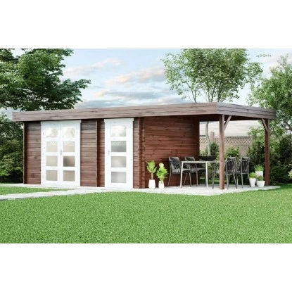 Die Wandstärke des Gartenhauses kann entweder 28 mm oder 44 mm betragen, wobei eine Stärke von 44 mm für eine erhöhte Stabilität empfohlen wird. Das Massivholzdach besteht aus Nut- und Federbrettern, und alle Blockbohlen sind mit einer 4-fach Eckausfräsung versehen, um eine wind- und regendichte Konstruktion zu gewährleisten.