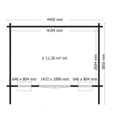 Das Alpholz Gartenhaus Saskatoon mit Satteldach ist in zwei verschiedenen Größen erhältlich. Das Gerätehaus Saskatoon 1 hat ein Außenmaß von 465 x 391 cm mit einem Dachüberstand. Es bietet eine Grundfläche von 13,1 m² und einen Rauminhalt von 27,2 m³. Das Gerätehaus Saskatoon 2 hat ein größeres Außenmaß von 465 x 481 cm und eine Grundfläche von 17,1 m² mit einem Rauminhalt von 35,5 m³. Beide Modelle haben eine Gesamthöhe von 248 cm und eine Seitenwandhöhe von 187 cm. Das Gartenhaus besteht aus 28 mm starken Blockbohlen aus nordischer Fichte und verfügt über ein Satteldach mit einer Dachneigung von 15° und einer Dachlast von 100 kg/m².