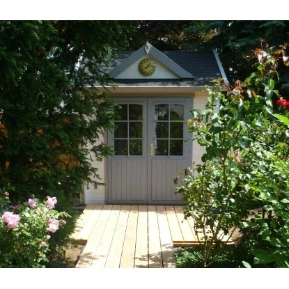 Das Holz-Gartenhaus überzeugt durch sein klassisches Design. Es eignet sich für den universellen Einsatz als Geräteschuppen, Gartenpavillon oder Freizeithaus.