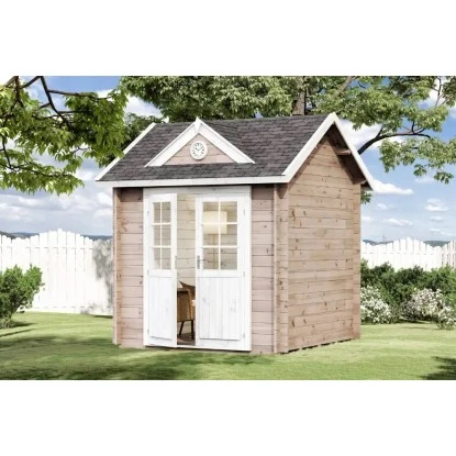 Das Gartenhaus ist in Blockbohlenbauweise aus imprägniertem Holz gefertigt. Durch die Imprägnierung wird kein weiterer Anstrich benötigt um das Haus vor Verwitterung zu schützen. Das Gerätehaus verfügt über eine stabile Konstruktion, mit einer Wandstärke von 28 mm. Das Dach des Gerätehauses ist als Satteldach konstruiert. Die Dacheindeckung ist separat erhältlich.