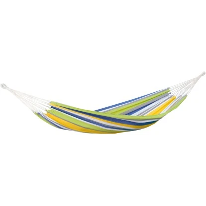 Die Hängematte Tahiti Kolibri verbindet leuchtende Farben mit einem kuscheligen Stoff. Entspannen Sie unter freiem Himmel und lassen Sie die Seele baumeln. Der robuste EllTex (Extra Long Lasting Textile) Stoff ist wetterfest und UV-beständig.