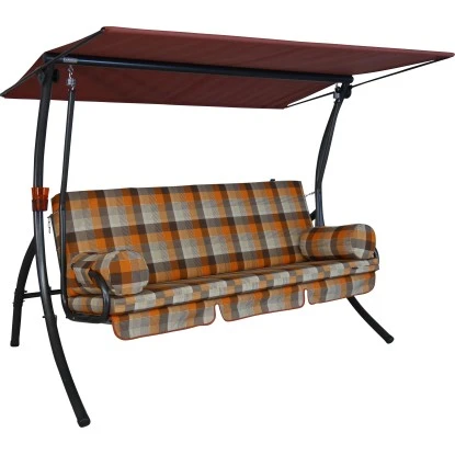 Die Angerer Hollywoodschaukel Dream ist mit wenigen Handgriffen zur Liegefläche abklappbar. Das Gestell besteht aus verzinktem Stahl, der für optimalen Korrosionsschutz mit einer kratzunempfindlichen Pulverbeschichtung veredelt wurde. Viele Teile, wie beispielsweise der witterungsbeständige Sitz aus Kunststoff, werden bereits werksseitig vormontiert geliefert, sodass der Aufbau der Hollywoodschaukel kinderleicht ist. Die Auflage besteht aus je einem Sitz- und Lehnenkissen, sowie zwei Nackenrollen und einer Unterlage. Alle Polster der Schaukelauflage sind mit einem Reißverschluss versehen und somit abziehbar und waschbar. Das Sonnendach der Hollywoodschaukel ist aus einem sehr hochwertigen und festen Polyacrylstoff gefertigt, der dank seiner speziellen Outdoor-Ausrüstung ideal für den Einsatz im Garten geeignet ist. Der robuste Stoff ist wasser- und schmutzabweisend beschichtet und hat eine hohe Lichtechtheit. Das Dach ist in der Neigung verstellbar und kann nach vorne und hinten verschoben werden, sodass stets optimaler Sonnenschutz erzielt werden kann.