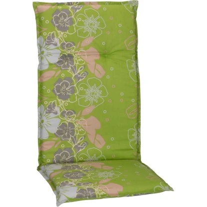 Mit der Beo Saumauflage aus der Serie Börde im Design Blumenranke auf apfelgrünem Hintergrund sitzen Sie auch an längeren Abenden stets bequem und genießen entspannte Stunden in ihrem Garten oder auf Ihrem Balkon. Die Auflage ist speziell für Hochlehner-Stühle konzipiert und mit den Abmessungen 118 cm x 50 cm bei einem Gewicht von ca. 0,6 kg rechteckig gefertigt. Eine hochwertige 6 cm starke Polsterung sichert Ihnen einen dauerhaft sehr guten Sitzkomfort. Die langlebige und robuste Börde-Auflage besteht zu 50 % aus Baumwolle und zu 50 % aus Polyester. Dieser Materialmix gewährleistet sowohl ein angenehmes Hautgefühl als auch höchste Belastbarkeit. Neben der modernen Optik und hohen Qualität steht die Marke Beo auch für eine umweltfreundliche Produktion. Sie ist von Hand gefertig. Sie können Ihre Beo Saumauflage Börde von Hand bis max. 30 °C reinigen.