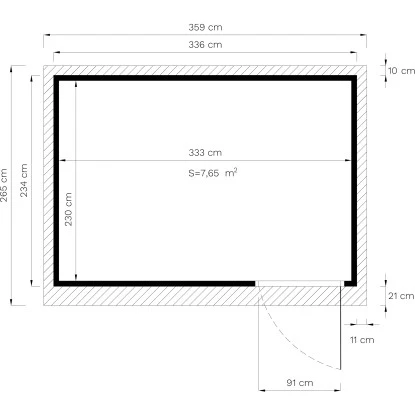 Das Bertilo Gartenhaus aus Holz ist platzsparend gestaltet mit einer Grundfläche von 7,87 m². Es bietet eine Durchgangsbreite von 91 cm und eine Durchgangshöhe von 186 cm. Der breite Eingang ermöglicht einen einfachen Zugang des Holz-Gartenhauses, auch mit größeren Geräten, Gartenutensilien, Fahrrädern und Gartenmöbeln. Die Firsthöhe beträgt 232 cm, wodurch eine angenehme Kopffreiheit im Innenraum gegeben ist. Der Boden ist bereits im Lieferumfang enthalten.