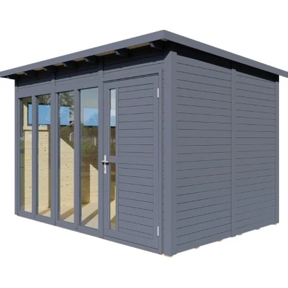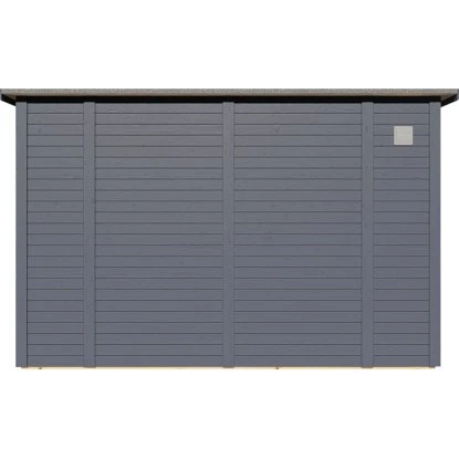 Das Gartenhaus aus Holz überzeugt durch sein modernes Design und ist dabei in schlichtem Anthrazit gehalten. Es eignet sich für den universellen Einsatz als Geräteschuppen, Gartenpavillon oder Freizeithaus.
