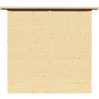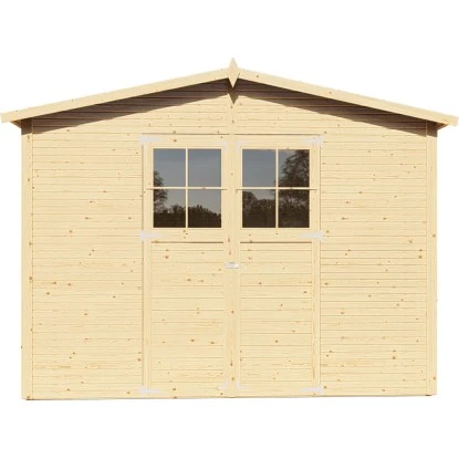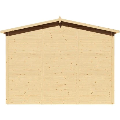 Das Gartenhaus ist aus unbehandeltem Holz in Elementbauweise gefertigt. Durch die naturbelassene Oberfläche bleibt eine natürliche Optik mit Holzmaserung erhalten. Zum Schutz vor Witterungseinflüssen sollte die Oberfläche individuell mit einer Lackierung oder Lasierung veredelt werden. Das Gerätehaus verfügt über eine stabile Konstruktion, mit einer Wandstärke von 18 mm. Die maximalen Schneelast des Satteldachs liegt bei 85 kg/m. Die Dacheindeckung ist separat erhältlich.