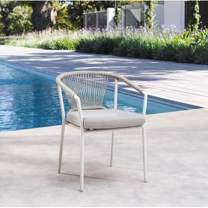 Der Best Dining-Sessel Matera verfügt über ein korrosionsfreies, wetterfestes Aluminiumgestell, wodurch er leicht im Handling ist. Die Rope-Bespannung ist absolut witterungsbeständig und trocknet sehr schnell. Der Sessel ist stapelbar und lässt sich daher platzsparend verstauen.