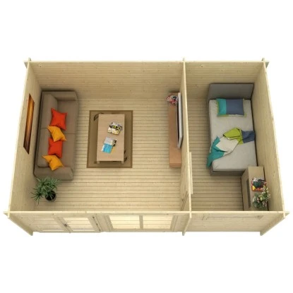 Das Carlsson Holz-Gartenhaus ist großzügig gestaltet mit einer Grundfläche von 22,33 m². Es bietet eine Durchgangsbreite von 155 cm und eine Durchgangshöhe von 195 cm. Der breite Eingang ermöglicht ein einfaches Betreten des Holz-Gartenhauses, auch mit größeren Geräten, Gartenutensilien, Fahrrädern und Gartenmöbeln. Die Firsthöhe beträgt 225 cm, wodurch eine angenehme Kopffreiheit im Innenraum gegeben ist. Das Gartenhaus ist in 2 einzelne Räume aufgeteilt. Der Boden ist separat erhältlich.