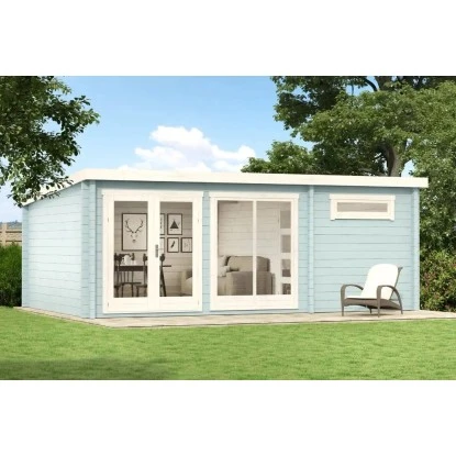 Das Gartenhaus ist aus imprägniertem Holz in Blockbohlenbauweise gefertigt. Durch die Imprägnierung wird kein weiterer Anstrich benötigt um das Haus vor Verwitterung zu schützen. Das Gartenhaus verfügt über eine robuste Konstruktion, mit einer Wandstärke von 70 mm. Das Dach des Gerätehauses ist als Pultdach gestaltet. Die Dacheindeckung ist separat erhältlich.
