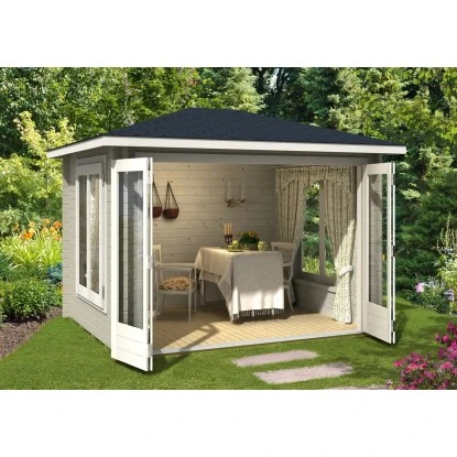 Das Gartenhaus überzeugt durch sein klassisches Design. Es eignet sich für den universellen Einsatz als Geräteschuppen, Gartenpavillon oder Freizeithaus.