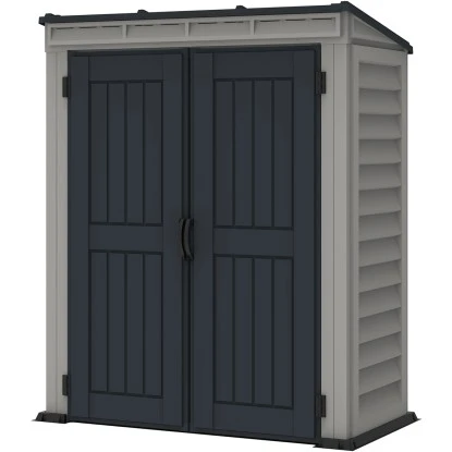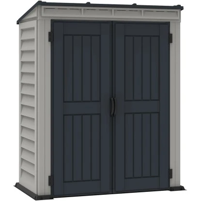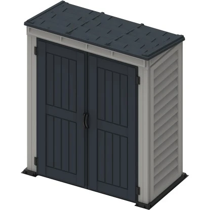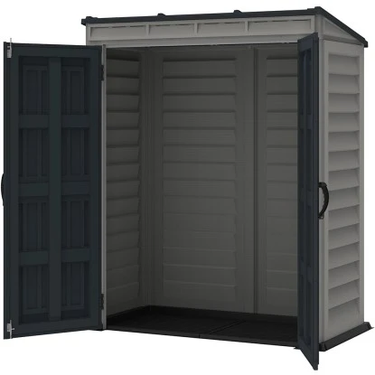Das Duramax Kunststoff-Gerätehaus in Grau ist platzsparend gestaltet mit einer Grundfläche von 1,6 m². Das moderne Gerätehaus eignet sich für den universellen Einsatz als Geräteschuppen, Gartenpavillon oder Freizeithaus. Es bietet eine Durchgangsbreite von 134 cm und eine Durchgangshöhe von 180 cm. Der breite Eingang ermöglicht ein bequemes Betreten des Holz-Gartenhauses, auch mit größeren Geräten, Gartenutensilien, Fahrrädern und Gartenmöbeln.