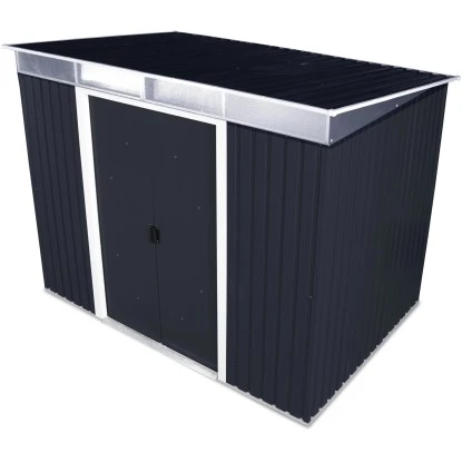 Das Gerätehaus verfügt über eine robuste Konstruktion, mit einer Wandstärke von 0,33 mm. Die maximalen Schneelast des Pultdachs liegt bei 59,15 kg/m. Die Firsthöhe beträgt 202 cm, wodurch eine angenehme Kopffreiheit im Innenraum gegeben ist. Die Oberfläche des Metall-Gerätehauses ist pulverbeschichtet, um es optimal vor Witterungseinflüssen zu schützen und Korrosion vorzubeugen.