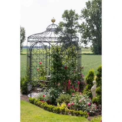 Passt zum Eleo Pavillon Siena: Das Rankgitter Rosa pulverbeschichtet in Anthrazit (DB703) macht Ihren Gartenpavillon zu einem romantischen Ort zum Träumen und unterstützt dabei Ihre Rankpflanzen. Angepasst auf den Eleo Pavillon Siena wird es in diesen einfach eingehängt.