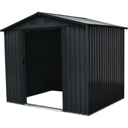 Das Metall-Gerätehaus überzeugt durch sein ansprechendes Design und ist dabei in schlichtem Anthrazit gehalten.