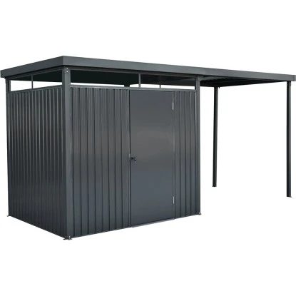 Artikelhinweis: Der Seitenanbau kann ausschließlich in Verbindung mit dem Floraworld Metall-Gerätehaus Stahl Anthrazit 233 cm x 190 cm (OBI Art.-Nr. 9396797) verwendet werden.