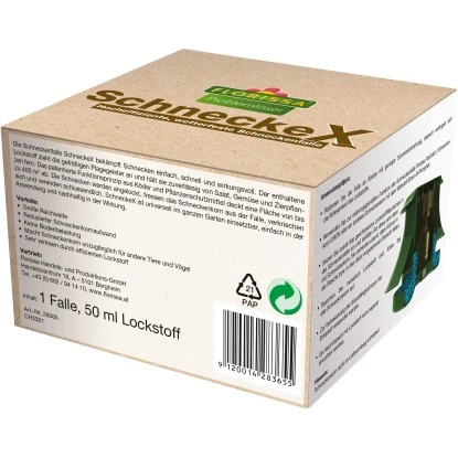 Die Florissa SchneckeX ist eine wetterfeste Schneckenfalle mit geringem Wartungsaufwand für hocheffiziente Schneckenbekämpfung. Die Schneckenfalle stellt keine Gefahr für die Tierwelt dar. Im Lieferumfang ist 50 ml Lockmittel enthalten.