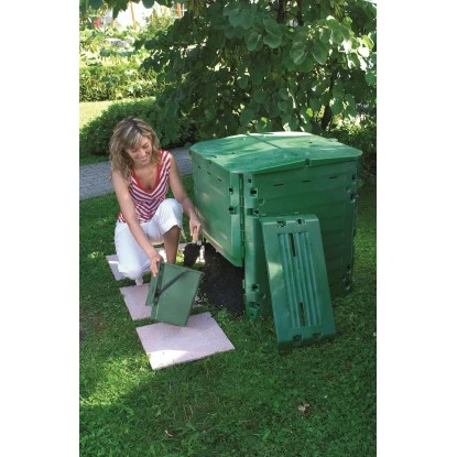 Befüllung und EntnahmeDer Thermo – King bietet einen Nutzinhalt von 600 l. Der Komposter ist mit zwei großen Einfüllklappen ausgestattet. Dadurch können Sie diesen ganz bequem, z.B. mit großen Eimern, befüllen. Außerdem bietet er eine praktische Entnahme der Komposterde. Dafür entfernen Sie einfach die untere Tür am Bio-Komposter.