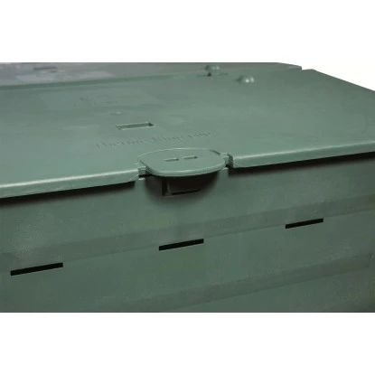 Dieser Kunststoff Komposter besteht aus dem Qualitätswerkstoff Thermolen. Thermolen ist ein UV- und witterungsbeständiger Kunststoff und sorgt für eine lange Lebensdauer des Komposters. Seine Wind-Fix-Deckelarretierung für den Sommer- und Winterbetrieb sorgt zur Regulierung der Luftzirkulation im Komposter. Ebenfalls dient diese zur Windsicherung des Deckels.