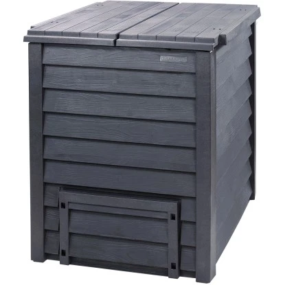 Der Thermo-Wood Komposter ist ein Premiumprodukt das durch sein Design in täuschend echter Holzoptik überzeugt. Anwenderfreundliche Produktvorteile machen den Komposter zu einem Spitzenprodukt seiner Klasse: Bequemes Befüllen durch zwei große Flügelklappen. Praktische Kompostentnahme durch zwei Entnahmeklappen. Schnelle Kompostierung durch ein ausgeklügeltes Belüftungssystem und Thermowände aus Thermolen. Die Lüftungsöffnungen sind an allen vier Seiten unterhalb der Holzschalung verdeckt, die Seitenwände bleiben somit ganzflächig dekorativ.