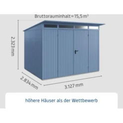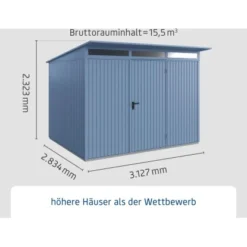 Ecostar Gerätehaus Trend Mit Pultdach Typ 3 RAL5014 Taubenblau Doppeltür