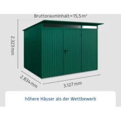 Ecostar Gerätehaus Trend Mit Pultdach Typ 3 RAL6005 Moosgrün Einzeltür