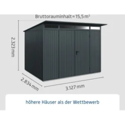 Ecostar Gerätehaus Trend Mit Pultdach Typ 3 RAL7016 Anthrazitgrau Doppeltür