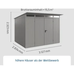 Ecostar Gerätehaus Trend Mit Pultdach Typ 3 RAL9007 Graualuminium Doppeltür