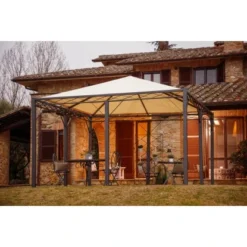 8-Eck-Pavillon 442 Grau-Weiß 44 Mm 7 Fensterelemente 347 Cm X 347 Cm