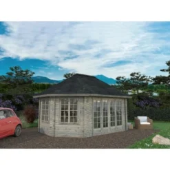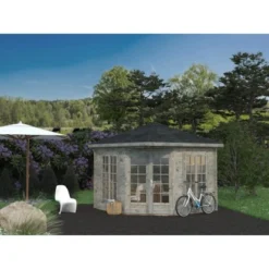 Palmako Holz-Pavillon Julie Grau Imprägniert 330 Cm X 330 Cm Inkl. Fußboden