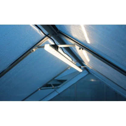 Alle Modelle sind lüftungsoptimiert. Das mitgelieferte Seitenfenster eröffnet in Kombination mit den Dachfenstern und den Doppelschiebetüren eine optimale Luftzirkulation im Gewächshaus.