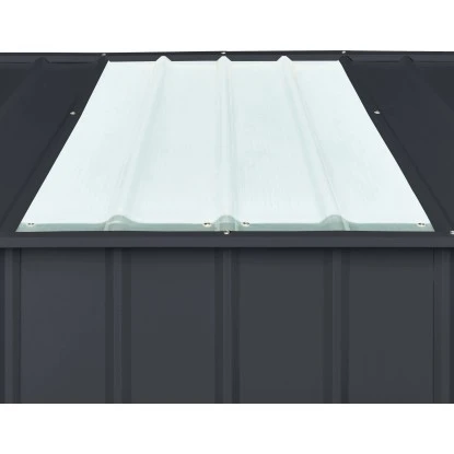 Die globel Dachpaneele Skylight 1 sind lassen Tageslicht in die Premium-Gerätehäuser von globel, ohne auf Diskretion zu verzichten: Die Seiten bleiben geschlossen, und selbst der Einblick ins Gerätehaus von oben ist nicht möglich, da sie lediglich transluzent, aber nicht durchsichtig sind.