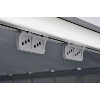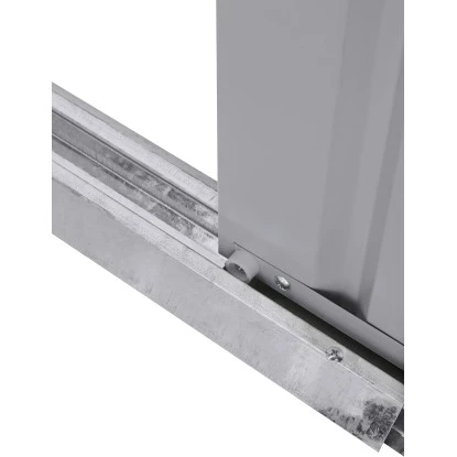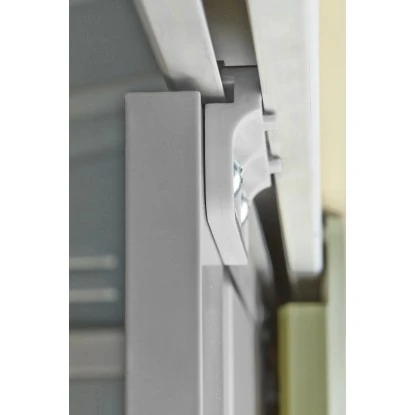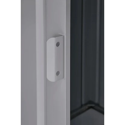 Das Gerätehaus überzeugt durch seine ansprechende Optik und ist dabei in der Farbe Silber gehalten.