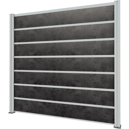 Die schicken und langlebigen Füllungen aus WPC oder Schichtstoffplatten werden einfach und schnell in die vorhandenen Nuten in den stabilen Aluminium-Trägerpfosten eingeschoben.