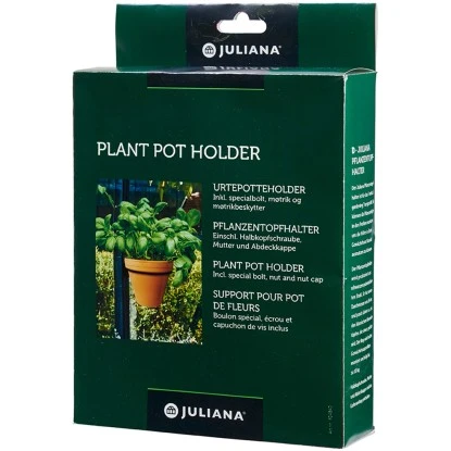 Der Juliana Pflanzentopfhalter ist für das „vertical gardening“ hergestellt. Sie können die Pflanzentöpfe in den Profilen montieren, um die Höhe in Ihrem Gewächshaus variabel und optimal ausnutzen zu können. Der Pflanzentopfhalter besteht aus schwarzem pulverlackiertem Stahl. Er hat einen Durchmesser von 14 cm, und passt daher unter anderem zu den klassischen Keramiktöpfen, die etwas größer sind. Der Ring wird in den Gewächshausprofilen montiert und trägt bis zu 10 kg. Halbkopfschraube, Mutter und Abdeckkappe sind im Lieferumfang enthalten.