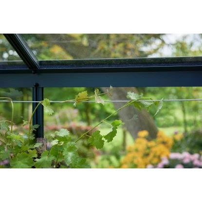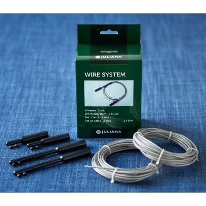Die Juliana Drahtseile geben Ihnen die Möglichkeit, Ihr Gewächshaus mit leichten Gardinen zu beschatten. Montieren Sie die Gardinen an einem Drahtseil oben in der Spitze vom Gewächshaus, und lassen Sie weiter unten die Gardine mit einem Drahtseil in Ihrer Position auf dem Glas halten. Die Drahtseile können auch zur starken Unterstützung von Pflanzen dienen wie z.B. Weinreben oder Kletterpflanzen.