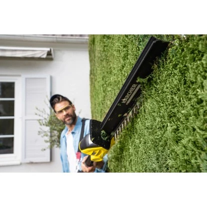 Mit der Kärcher Akku-Teleskop-Heckenschere PHG 18-45 Battery sind Sie jeder Höhe gewachsen.
