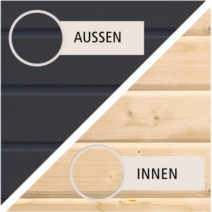 Das Karibu Holz-Gartenhaus ist praktisch gestaltet. Es bietet eine Durchgangsbreite von 139 cm und eine Durchgangshöhe von 175 cm. Der breite Eingang ermöglicht ein einfaches Betreten des Holz-Gartenhauses, auch mit größeren Geräten, Gartenutensilien, Fahrrädern und Gartenmöbeln. Die Firsthöhe beträgt 211 cm, wodurch eine angenehme Kopffreiheit im Innenraum gegeben ist. Der Boden ist separat erhältlich.