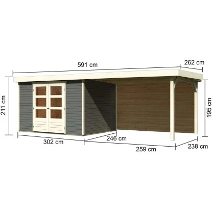 Holz-Gartenhaus mit praktischem Anbaudach