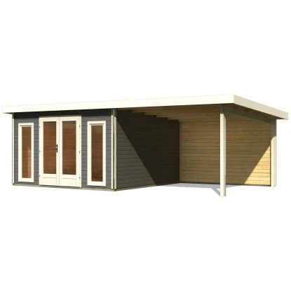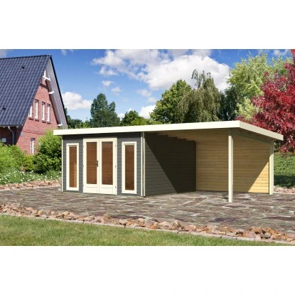 Karibu Holz-Gartenhaus Norrköping Terragrau Pultdach Lackiert 365 Cm X 365 Cm