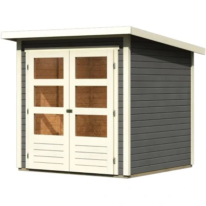 Das Gartenhaus überzeugt durch sein modernes Design. Es eignet sich für den universellen Einsatz als Geräteschuppen, Gartenpavillon oder Freizeithaus.