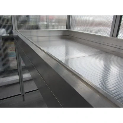 Die praktische KGT Pflanzwanne ist aus hochwertigem Aluminium gefertigt und verläuft über die gesamte Seitenwand des Gewächshauses. Die hochbruchfesten Kunststoff-Einlegeplatten sind individuell herausnehmbar und leicht zu reinigen. Dank der intelligenten Befestigung am Gewächshaus sind alle tragenden Einrichtungsteile hoch belastbar. Die Tiefe der Wanne beträgt ca. 63,5 cm. Zudem verfügt die Pflanzwanne über einen ca. 10 cm hohen Rand.