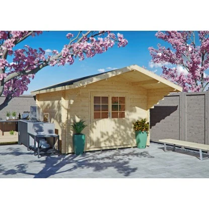 Das Gartenhaus ist aus unbehandeltem Holz in Blockbohlenbauweise gefertigt. Durch die naturbelassene Oberfläche bleibt eine natürliche Optik mit Holzmaserung erhalten. Zum Schutz vor Witterungseinflüssen sollte die Oberfläche individuell mit einer Lackierung oder Lasierung veredelt werden. Das Gerätehaus verfügt über eine stabile Konstruktion, mit einer Wandstärke von 28 mm. Die maximalen Schneelast des — liegt bei 85 kg/m. Die Dacheindeckung ist separat erhältlich.