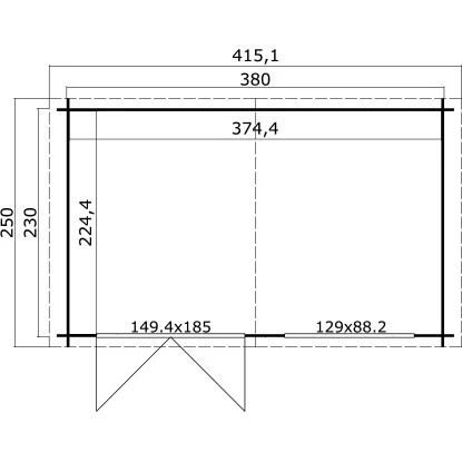Das Lasita Holz-Gartenhaus ist praktisch gestaltet. Es bietet eine Durchgangsbreite von 141,8 cm und eine Durchgangshöhe von 179,4 cm. Der breite Eingang ermöglicht ein bequemes Betreten des Holz-Gartenhauses, auch mit größeren Geräten, Gartenutensilien, Fahrrädern und Gartenmöbeln. Die Firsthöhe beträgt 245,1 cm, wodurch eine angenehme Kopffreiheit im Innenraum gegeben ist. Der Boden ist separat erhältlich.