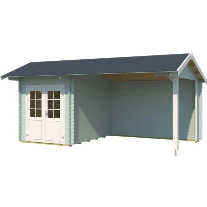 Das Holz-Gartenhaus überzeugt durch sein klassisches Design und ist dabei in der Farbe Gletschergrün gehalten. Es eignet sich für den universellen Einsatz als Geräteschuppen, Gartenpavillon oder Freizeithaus.