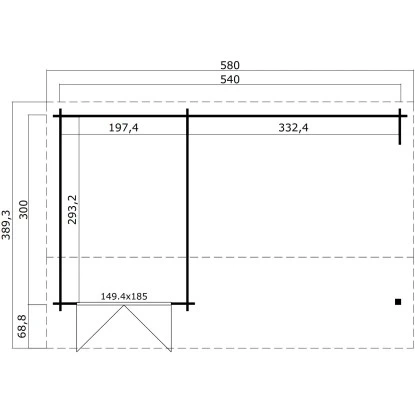 Das Lasita Gartenhaus aus Holz ist geräumig gestaltet mit einer Grundfläche von 15,63 m². Es bietet eine Durchgangsbreite von 141,8 cm und eine Durchgangshöhe von 179,4 cm. Der breite Eingang ermöglicht ein einfaches Betreten des Holz-Gartenhauses, auch mit größeren Geräten, Gartenutensilien, Fahrrädern und Gartenmöbeln. Die Firsthöhe beträgt 273,6 cm, wodurch eine angenehme Kopffreiheit im Innenraum gegeben ist. Der Boden ist bereits im Lieferumfang enthalten.
