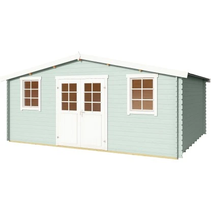 Das Gartenhaus überzeugt durch sein klassisches Design und ist dabei in schlichtem Gletschergrün gehalten. Es eignet sich für den universellen Einsatz als Geräteschuppen, Gartenpavillon oder Freizeithaus.